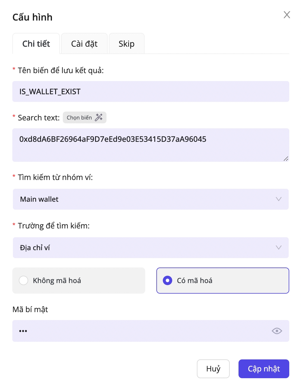 If your wallet records are encrypted locally, provide the Secret key to search them