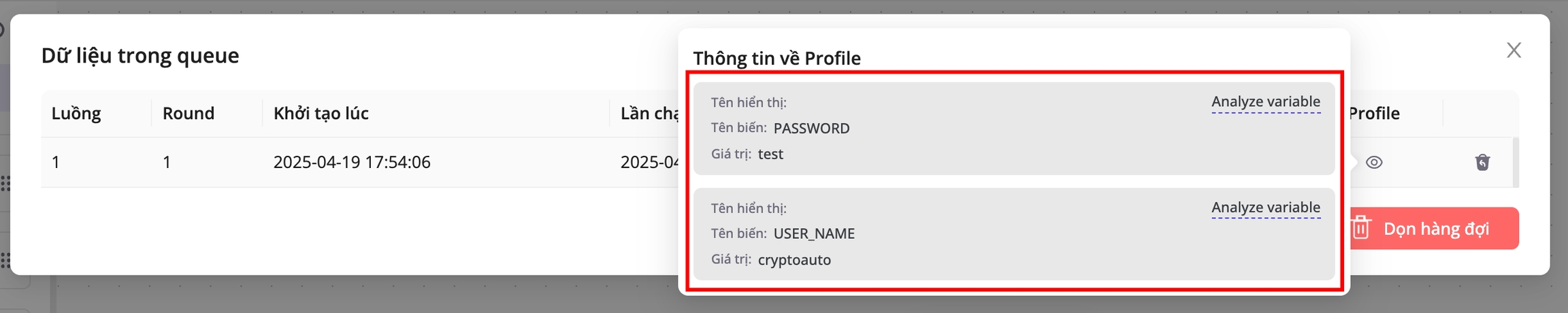 In the example above, the processor generates two profile variables: USER_NAME and PASSWORD
