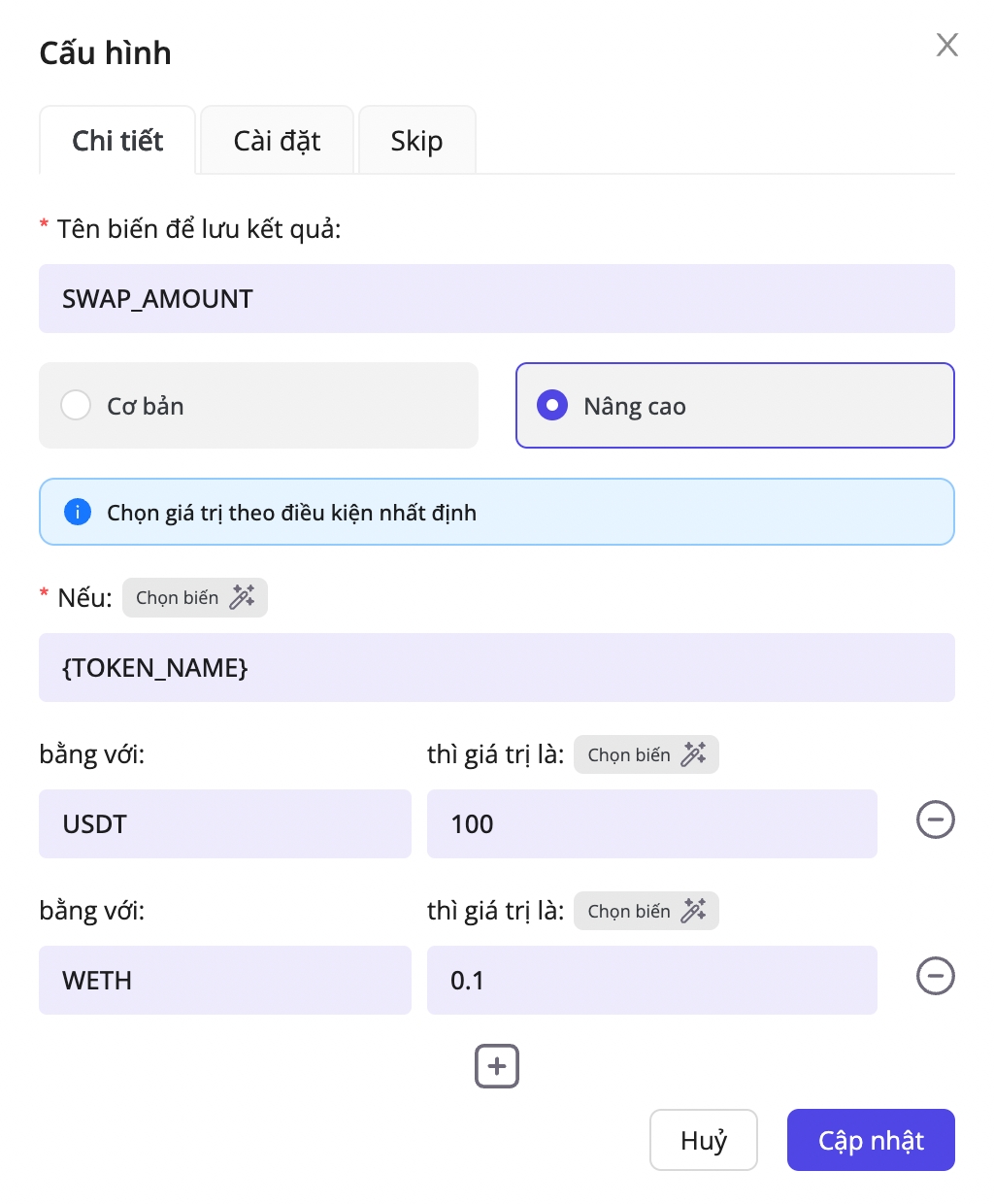 TOKEN_NAMEequalsUSDT, then setSWAP_AMOUNTto100.if