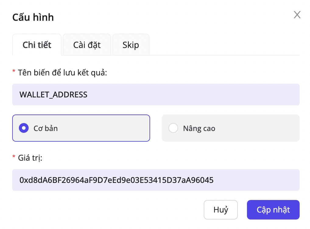 WALLET_ADDRESS variableConfiguration meanings: