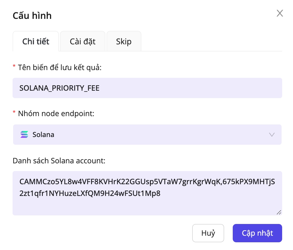 This processor outputs the chain’s current average priority fee. Pick a variable name to store it. For example, SOLANA_PRIORITY_FEE