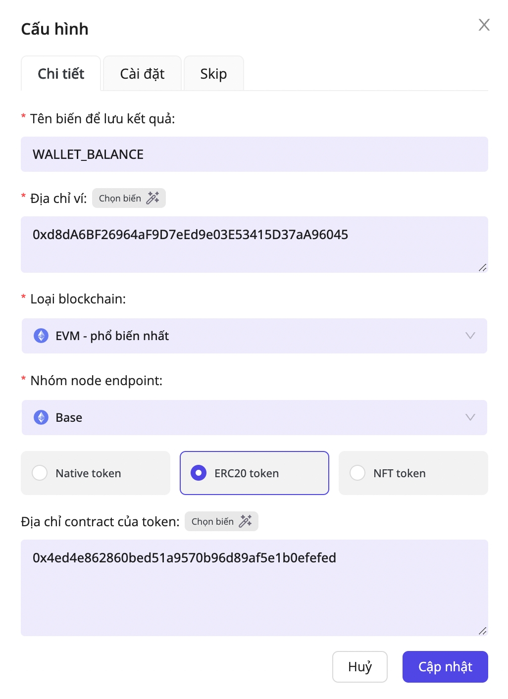 This processor will return the token balance in your wallet. Choose a variable name to store this result.