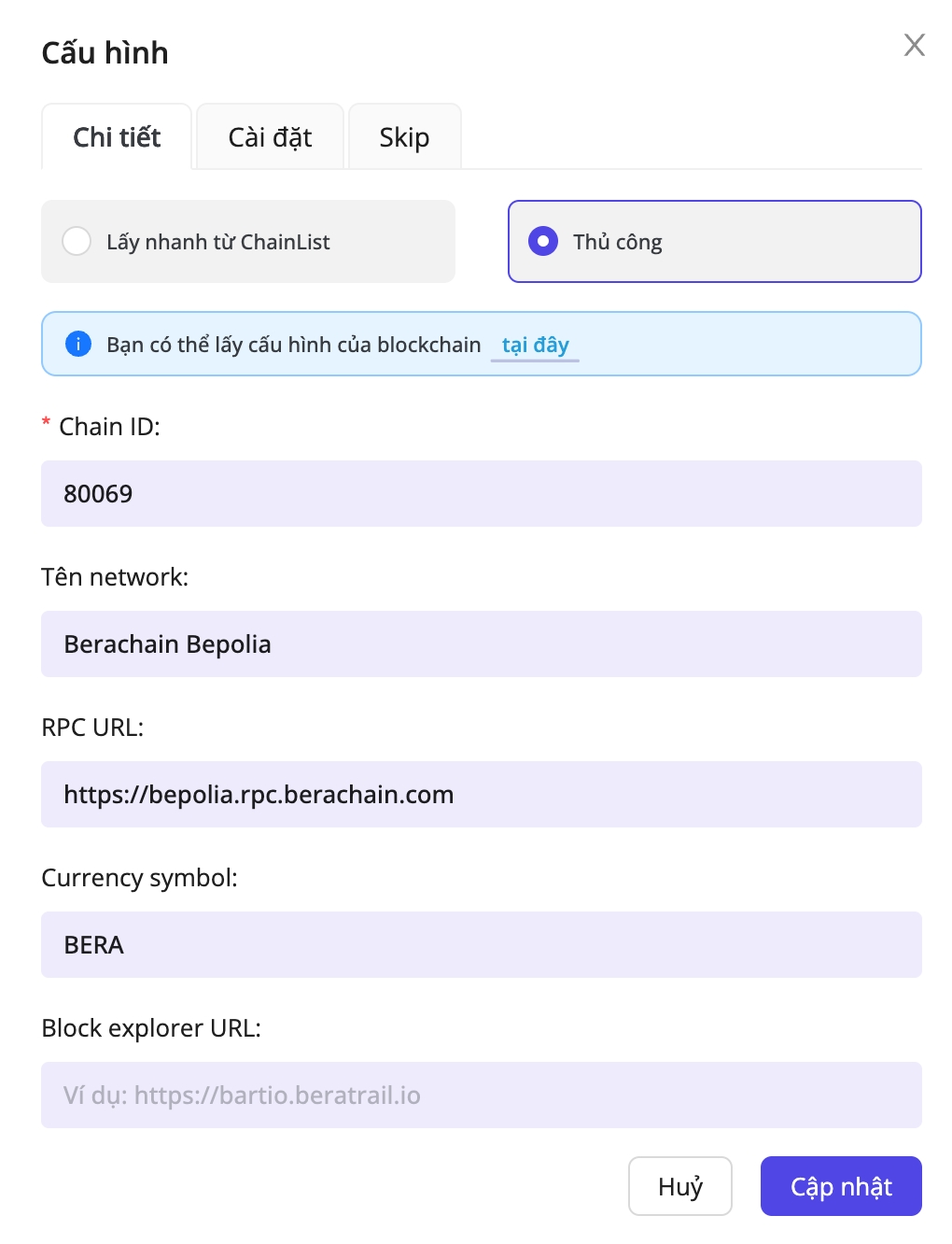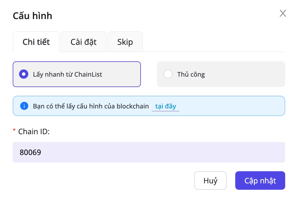 If the blockchain is already listed on ChainList, use this option to add it to Rabby without manually filling fields like Network name , RPC URL.