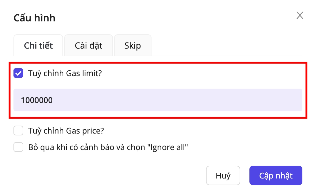 Customize Gas limit