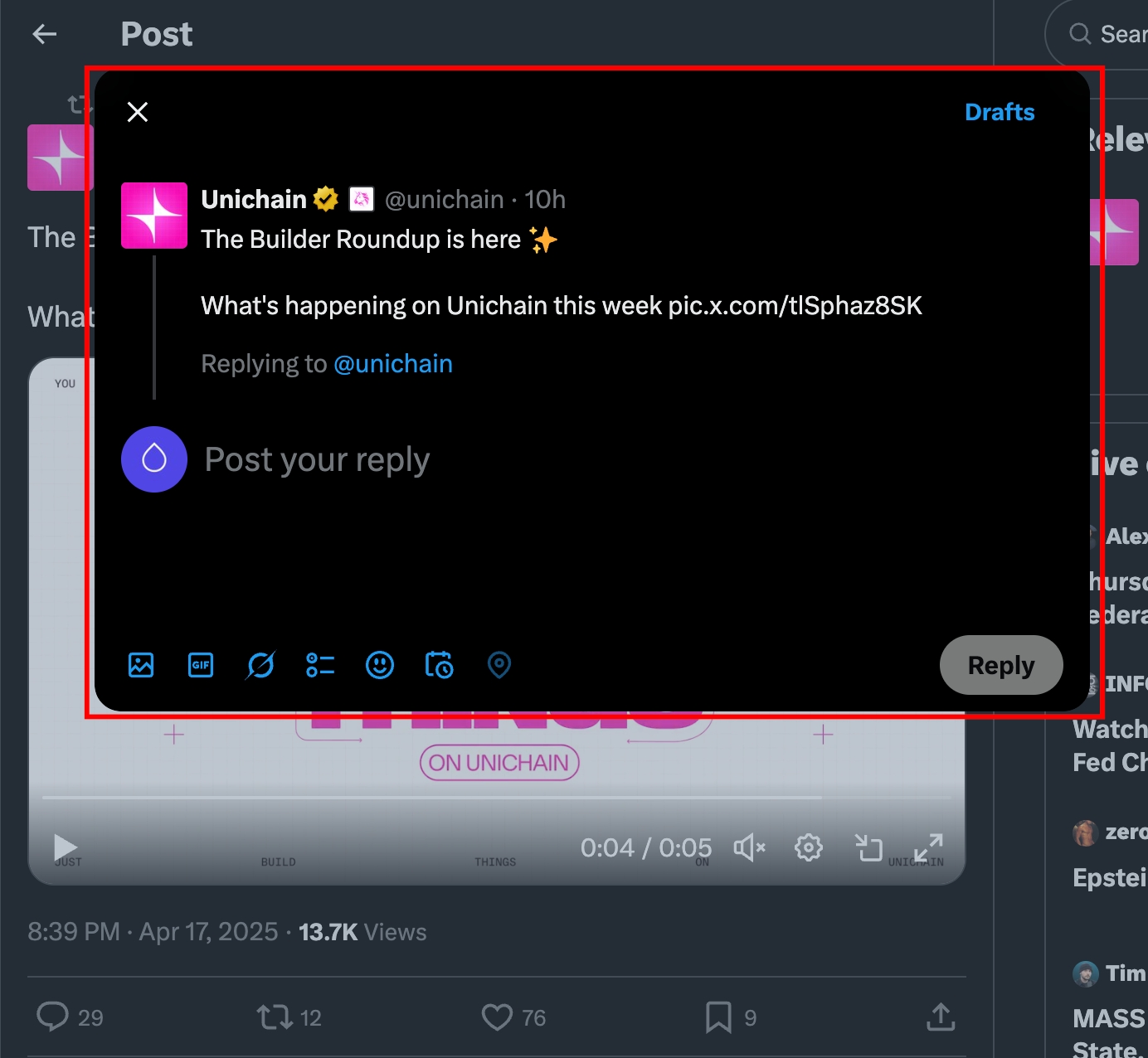 The URL of the tweet you want to comment