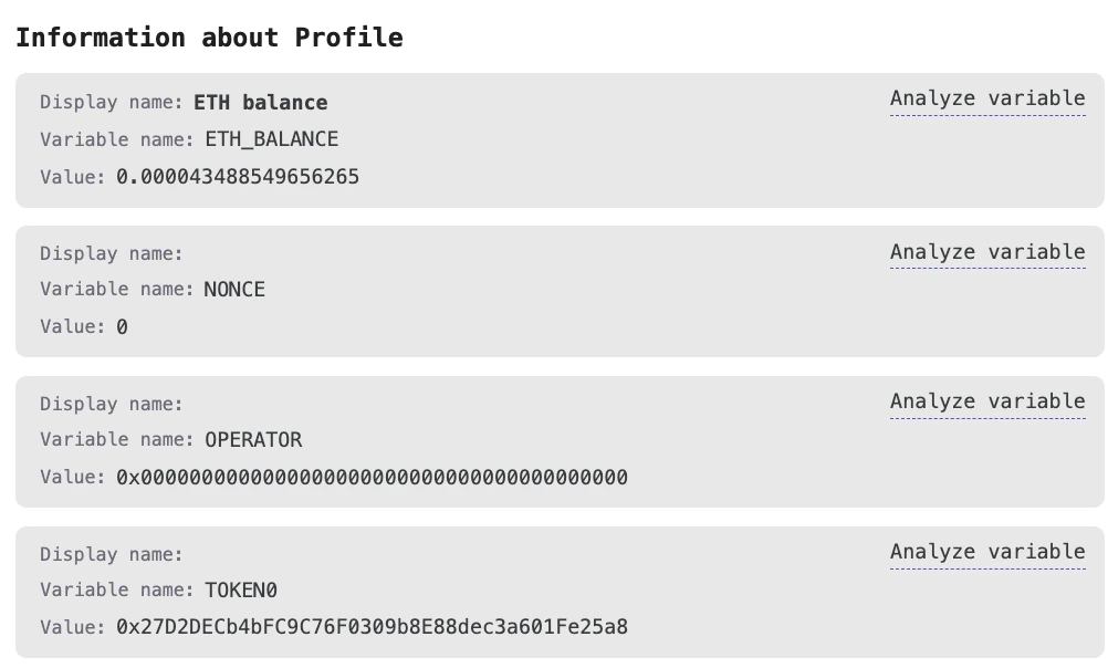 Variables to store results. After you paste in the ABI, simply click the + button and the variables will auto-fill in the same order as the ABI.